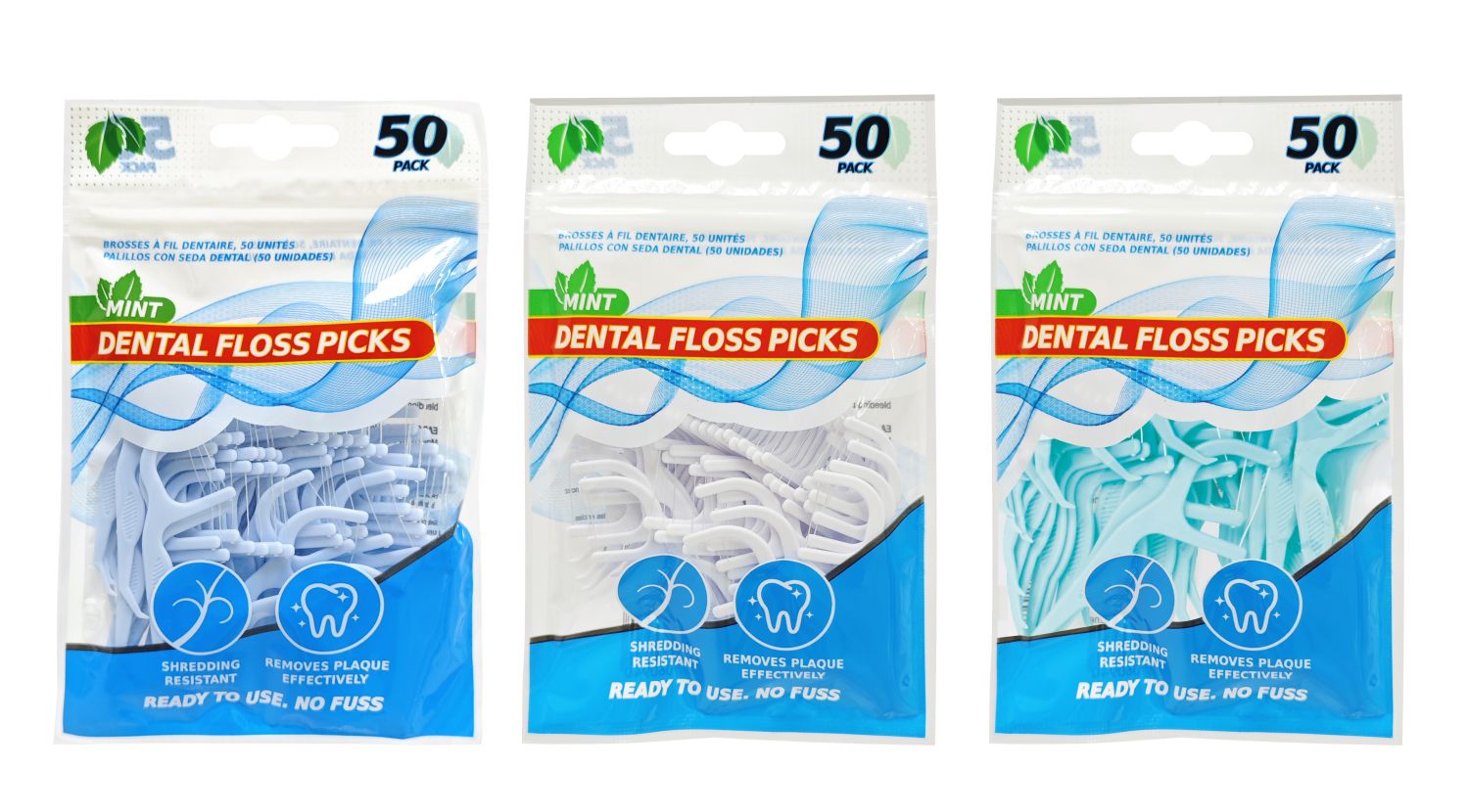 Dental Floss Pick 50 Pack 3 Assorted Colours